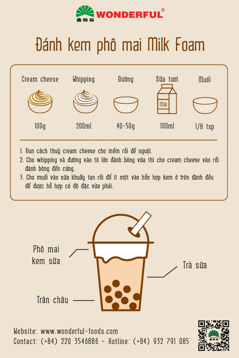 3. Công thức đánh kem phô mai Milk Foam
