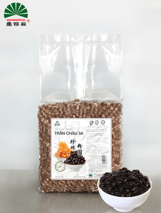 Trân châu 3A Wonderful Được sản xuất bởi nguyên liệu tinh bột sắn nhập khẩu cao cấp, kết hợp cùng phương pháp truyền thống cùng hệ thống máy móc hiện đại tạo nên sản phẩm trân châu Wonderful dai, giòn khó cưỡng. Thời gian bảo quản lâu dài, trân châu Wonderful luôn đóng vai trò chính trong các sản phẩm tiêu thụ của công ty !